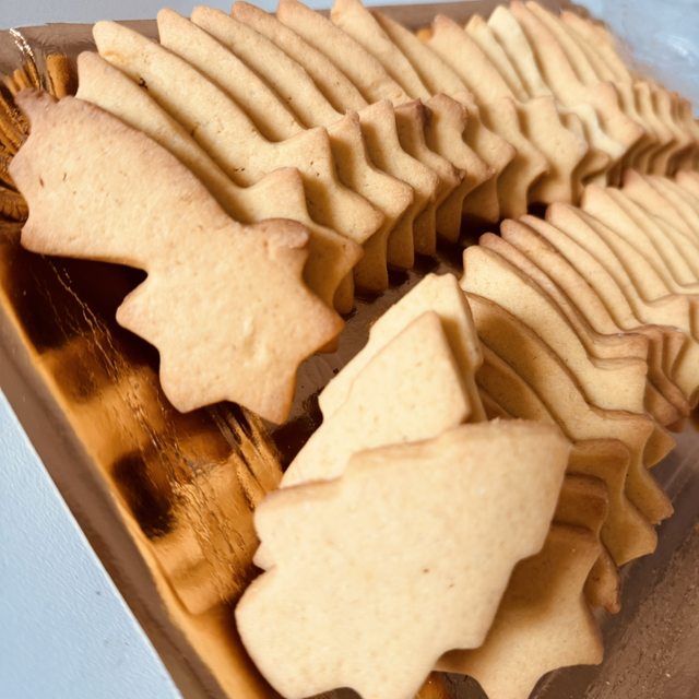 Piccoli biscotti artigianali in farina di mais, a forma di alberelli e stelline. Confezionati in un mini sacchetto regalo, ideali come cadeaux, segnaposto o da inserire nei cesti natalizi.